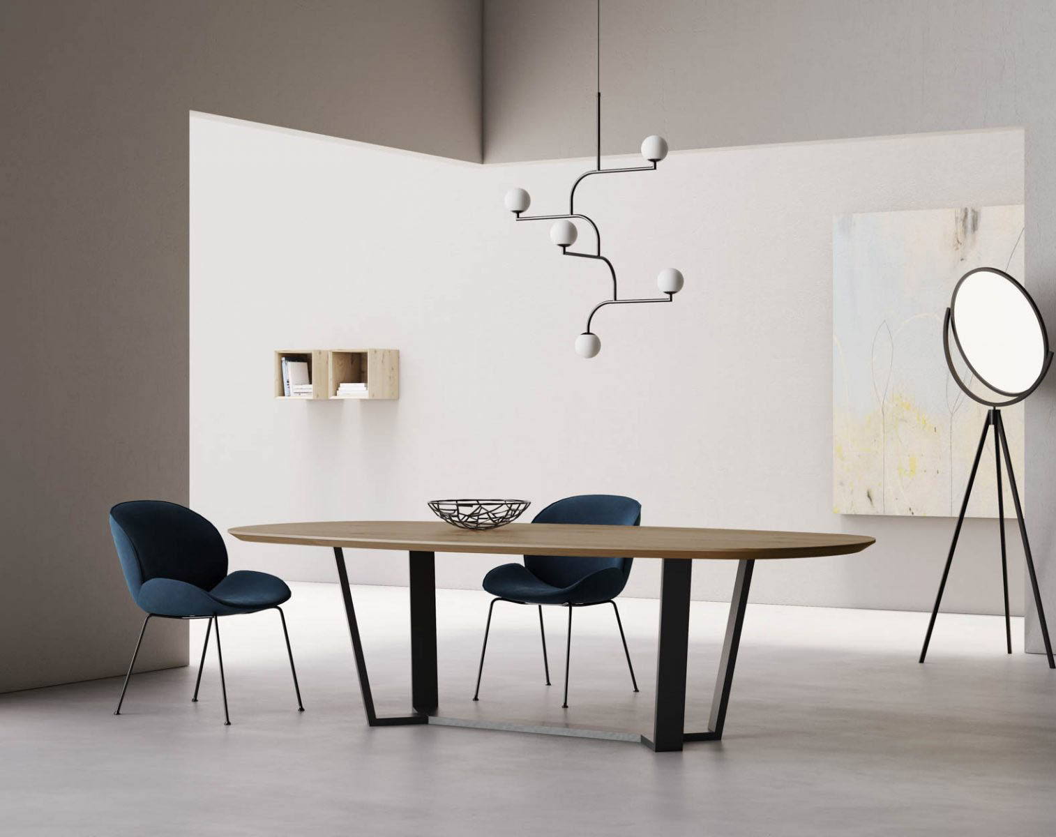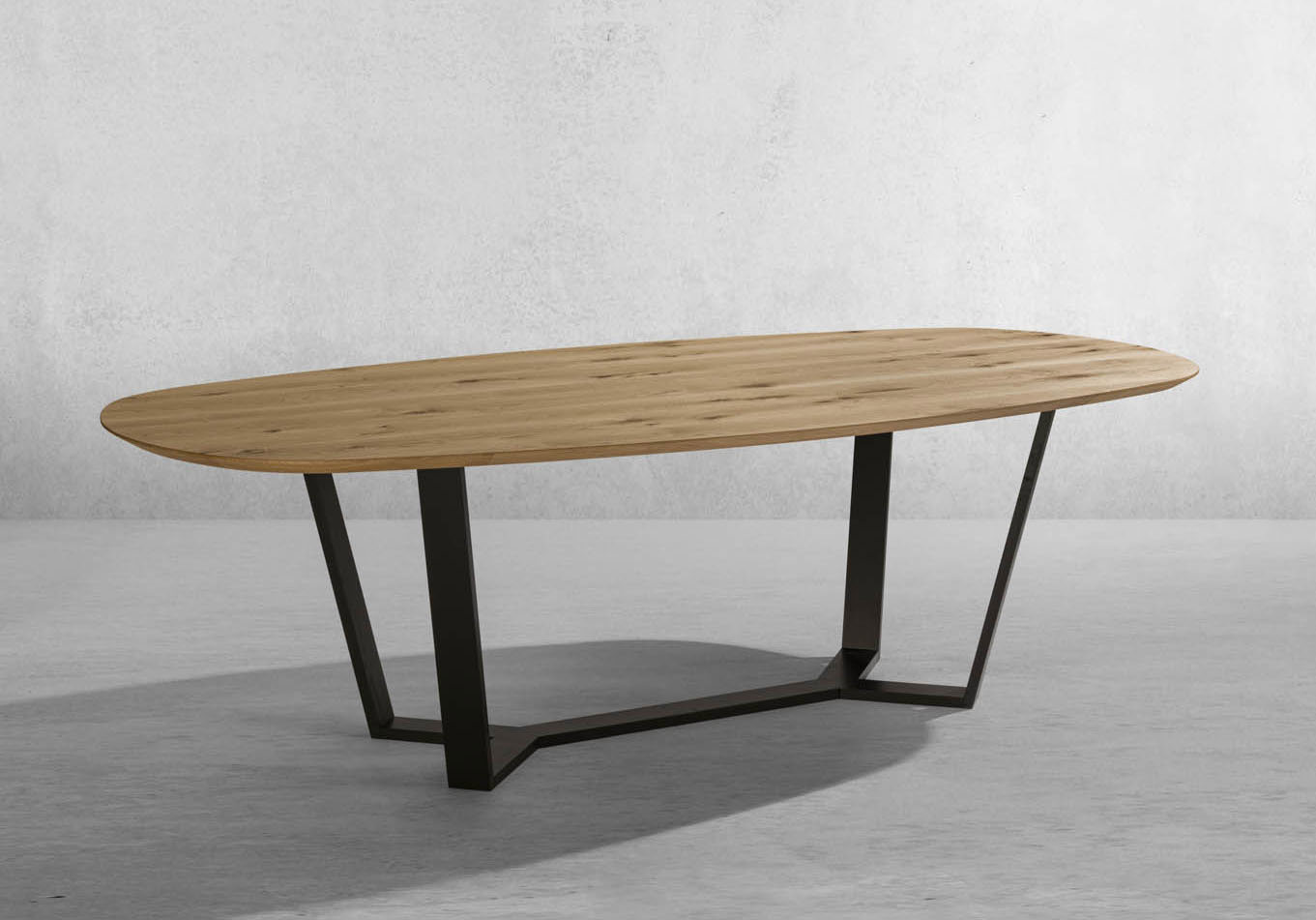 Tavolo Motion fisso con piano ellittico e bisellato