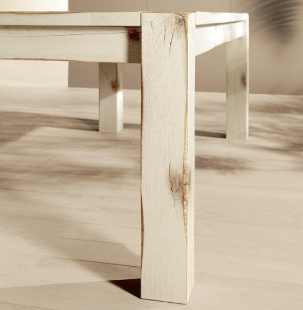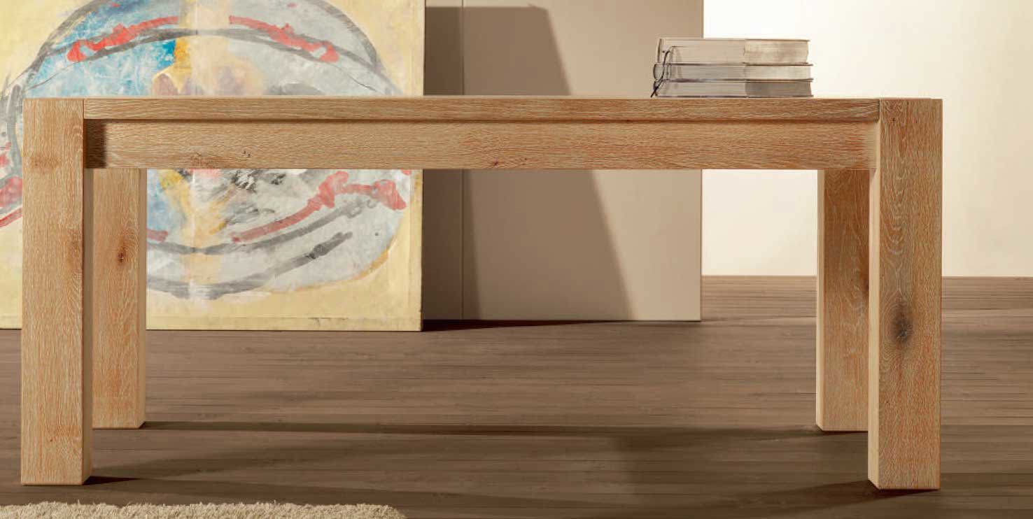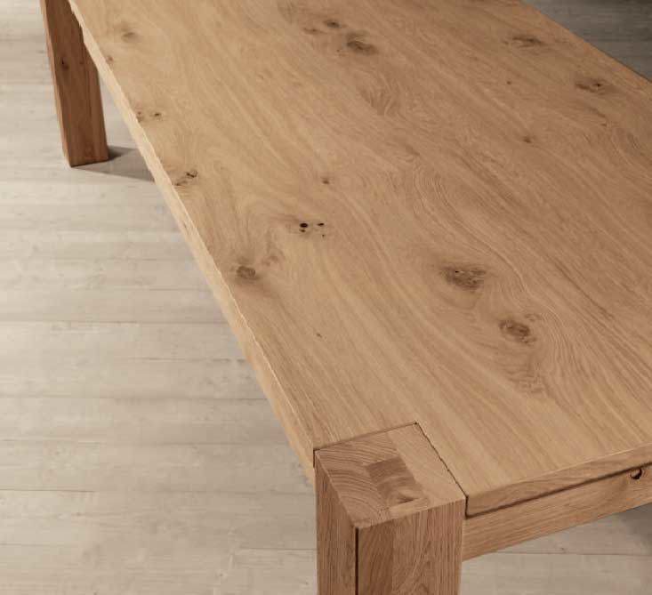 Serie tavoli Panama Rettangolari fisso con gamba in quercia (rovere) massellata o in taglio intero da 12 x 12 cm e piano quercia cuorata spessore 3 cm.
