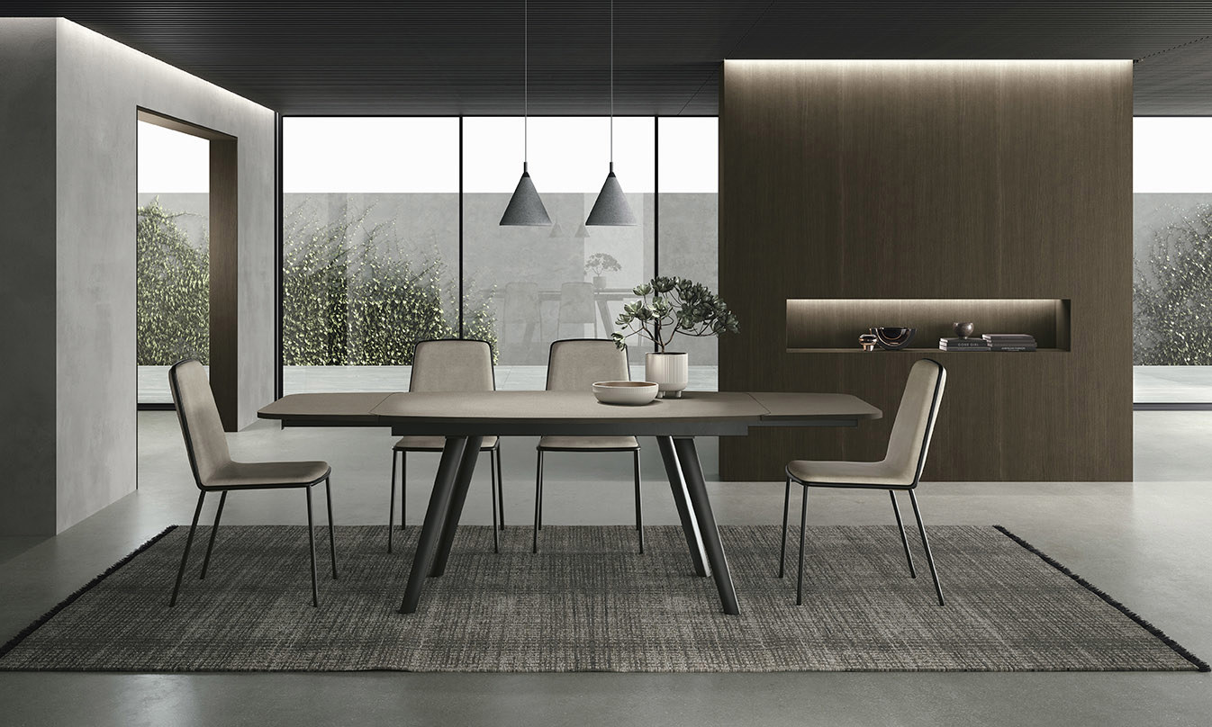 Grazie alle linee pulite, alla struttura centrale e al meccanismo di allunga “Crono System”, questo tavolo regala sensazioni di equilibrio e armonia, trasformando il momento del pranzo in una vera esperienza di benessere.